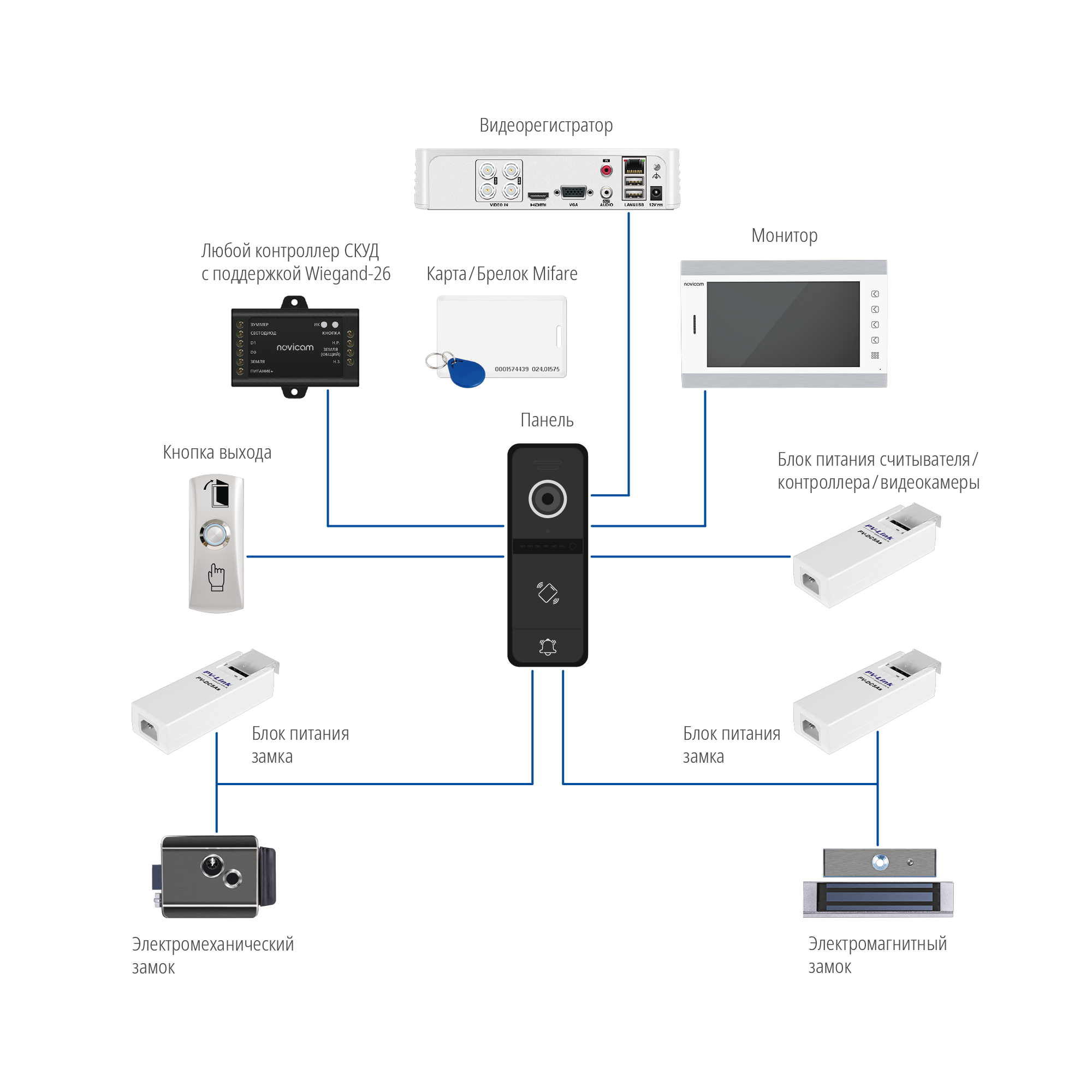 | Управление замком | Электромеханическое реле Н.Р./Н.З. 2A, DC 30В 1A, AC 125В импульсный режим |