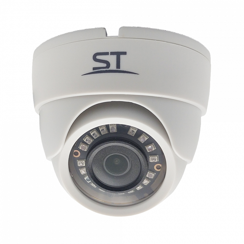 Видеокамера ST-2004, цветная,Разрешение:2,1МP (1920х1080)/960H,4 в 1(4 режима работы: AHD/TVI/CVI/Analog),с ИК подсветкой, Купольная, Сенсор: 1/3" Progressive Scan CMOS, Фокусное расстояние: 2,8mm (соответствует 113,3° по горизонтали), Дальность ИК подсветки: до 20 м, 18 SMD IR LED, Светочувствительность (мин. освещение): 0,01 Lux (цвет) / 0 Lux (с IR), Электронный затвор: 1/50-1/10000 сек, Напряжение питания: 12 В, OSD-меню: есть, Функции улучшения изображения: BLC,DWDR,AWB,MWB,3DNR,AGC, ИК-фильтр: Механический, Smart IR: есть, 25 к/с, Регулировка кронштейна: 3D-Ось, Рабочая температура: -20°… +60°С, Степень защищенности/вандалостойкость: IP54, Материал корпуса: Пластик