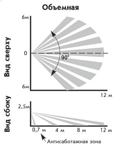 угол зоны обнаружения в горизонтальной плоскости 90°