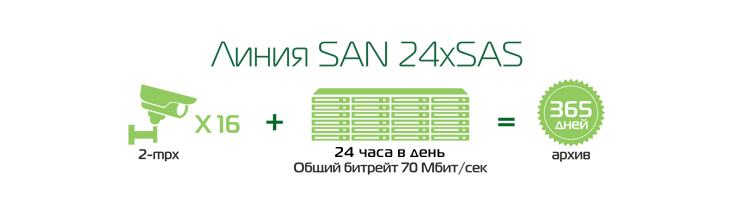 | «Линия SAN 16хSATA» | 16 | 192Tb | 169Tb | 96Tb | 4 988 400 ₽* |