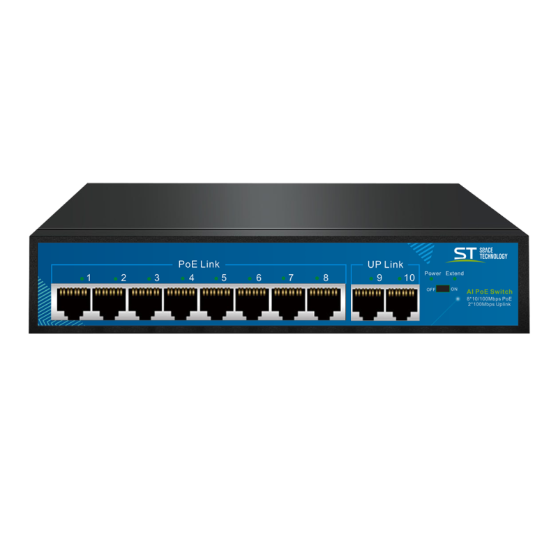 ST-S85POE (2M/96W/А) PRO, (версия 3), Switch POE 8-ми портовый для обеспечения проводных сетей напряжением 48В , защита от КЗ, Extend 250м., AI PoE, AI QoS, AI VLAN, Грозозащита, PoE порты: 8 х (10/100 Мбит/с), UpLink порты: 2 х (10/100 Мбит/с), SFP порты: нет, Max.пропускная сп-ть: 100 Мбит/канал, Uвых: 48 (±10%), Р(ном) каждый порт (Вт): 12 Вт, Р(макс) каждый порт (Вт): 30 Вт, Р(сумм) общая (Вт): 96 Вт, Тип РоЕ: А, Коммутационная способность (Гбит/с): 1,6 Гбит/с, AI PoE(watchdog)/Vlan/Extend/QoS, Система охлаждения: пассивная, МЕТАЛЛ, Температура эксплуатации: От -45°C до +55°C, Габаритные размеры ИП: 270х140х44 мм