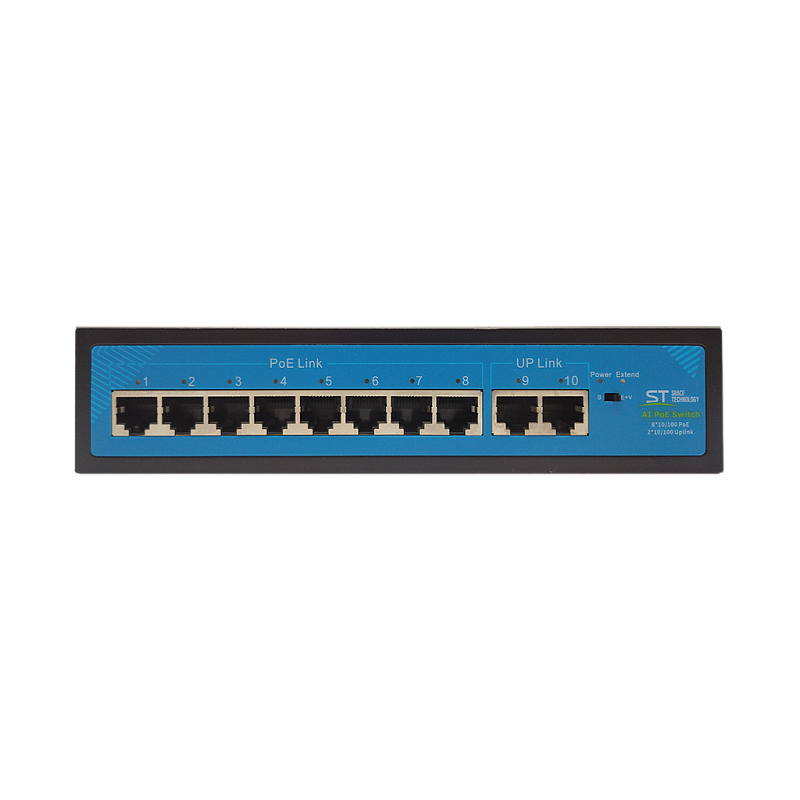Источник питания ST-S84POE (2M/96W/A), Switch POE 8-ми портовый для обеспечения проводных сетей напряжением 48В, защита от КЗ, Extend 250м., VLAN, PoE порты: 8 х (10/100 Мбит/с), UpLink порты: 2 х (10/100 Мбит/с), Max.пропускная сп-ть: 100 Мбит/канал, Uвых: 48 (±10%), Р(ном) каждый порт (Вт): 12 Вт, Р(макс) каждый порт (Вт): 30 Вт, Р(сумм) общая (Вт): 96 Вт, Тип РоЕ: А, Коммутационная способность (Гбит/с): 1,6 Гбит/с, Extend - режим работы с увеличением дальности передачи до 250м VLAN изоляция РоЕ портов, Система охлаждения: пассивная, Металл, Температура эксплуатации: От -45°C до +55°C, Габариты изделия, мм.: 270x170x44 мм