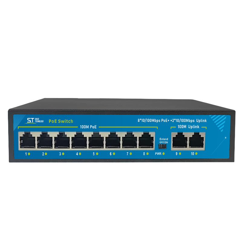 ST-S86POE (2G/120W/А) PRO, Switch POE 8-ми портовый для обеспечения проводных сетей напряжением 48В, защита от КЗ, Extend 250м., AI PoE, AI VLAN, Грозозащита, PoE порты: 8 х (10/100 Мбит /с), UpLink порты: 2 х (10/100 /1000 Мбит /с), SFP порты: нет, Max.пропускная сп-ть: ДО 1000 Мбит /канал, Uвых: 48 (±10%), Р(ном) каждый порт (Вт): 15 Вт, Р(макс) каждый порт (Вт): 30 Вт, Р(сумм) общая (Вт): 120 Вт, Тип РоЕ: А, Коммутационная способность (Гбит/с): 5,6 Гбит /с, AI PoE(watchdog)/Vlan(с 1 по 6 каналы)/Extend, Система охлаждения: пассивная, Металл, Температура эксплуатации: От -45°C до +55°C, Габариты изделия, мм.: 190х125х40 мм, Активное РОЕ