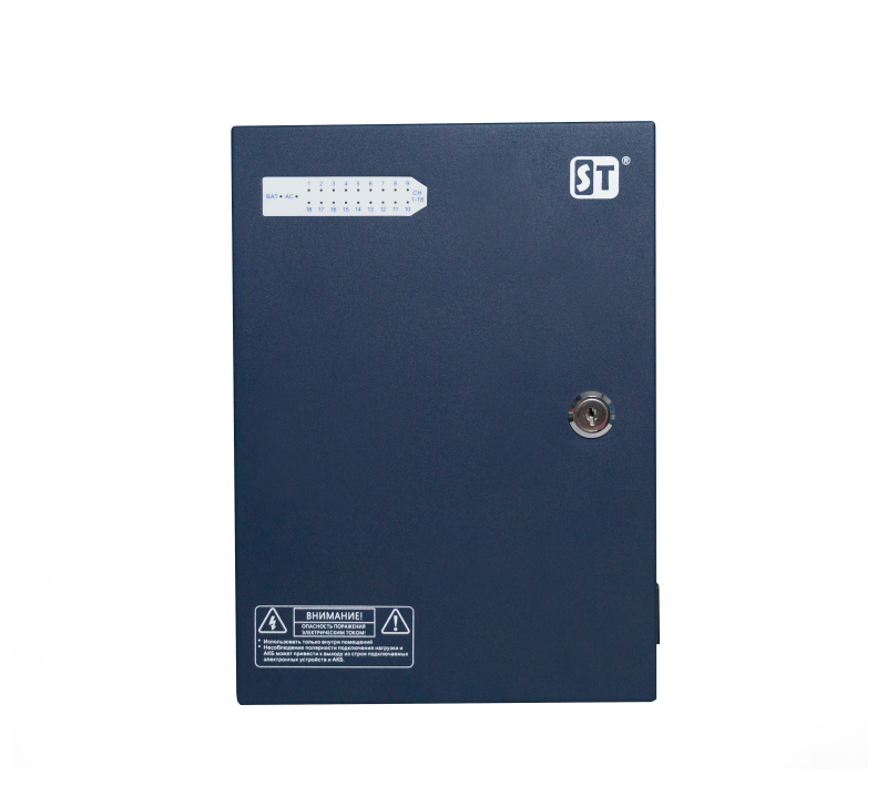 ST-ББП-30AR, Источник питания стабилизированный 12В/30А,с возможностью автономной работы от АКБ 40А/ч, защита от КЗ и глубокого разряда, Потребляемая мощность по сети 220В: не более 400 Вт, Мощность по цепи нагрузки 12 Вольт (при максимальном выходном токе: не более 360 Вт, Напряжение выходное,номинальное при наличии напряжения сети 220B: 12,0 В, Напряжение выходное,номинальное при отсутствии напряжения сети 220B (от АКБ): 13,0...10,5 В, Максимальный ток заряда АКБ: 2,0 А, Количество выходов (12Вольт / 1,5А): 18 шт., Максимальный ток нагрузки 1 канала: 1,5 А, Величина пульсаций выходного напряжения при номинальном токе нагрузки: не более 100 мВ, Ток ограничения выхода при коротком замыкании нагрузки: >1,7 А, Индикация: есть, Защита от короткого замыкания: есть, Рабочая температура: -25...+40°C