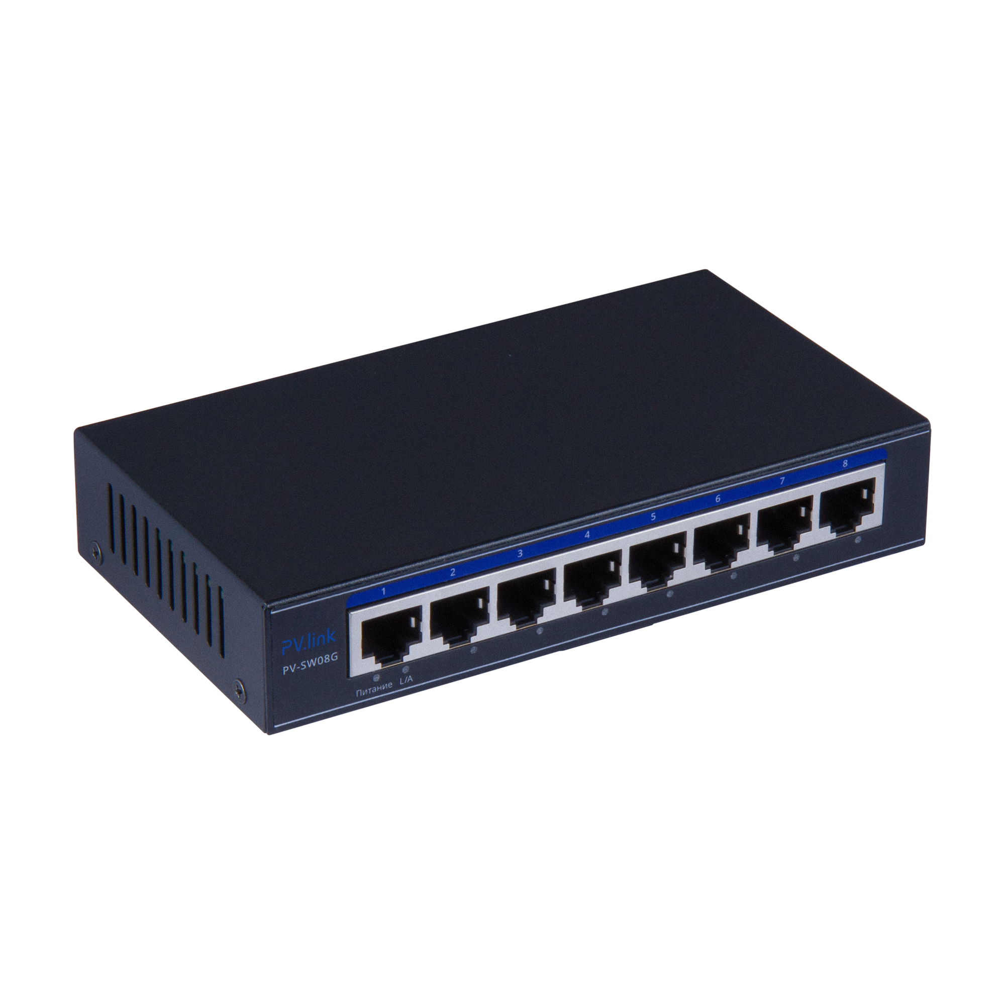 PV-Link PV-SW08G это 8 портовый гигабитный коммутатор 10/100/1000 Мбит/с. Предназначен для подключения и объединения потоков данных с IP устройств.