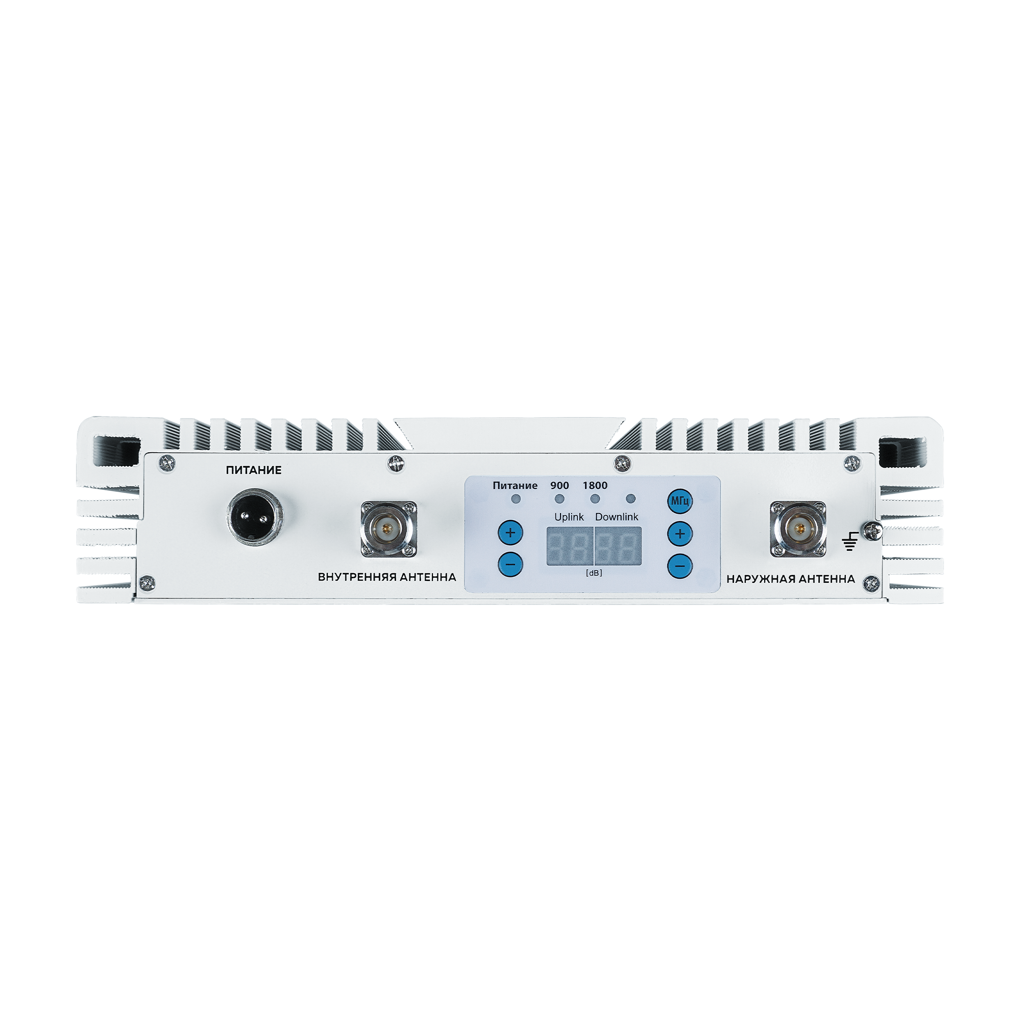 Трехдиапазонный усилитель сигнала (репитер) DS-900/1800/2100-27 мощностью 500 мВт (27дБм). Данный мощный усилитель сигнала применяется для улучшения качества связи всех операторов, работающих в стандартах 2G GSM900, 2G GSM1800, 3G UMTS900, 3G UMTS2100, 4G LTE900, 4G LTE1800, 4G LTE2100. Осуществляется также усиление сигнала в стандарте 4G LTE2100 (преимущественно оператора Билайн). Репитер может усилить сигнал в большом загородном доме, коттедже, офисе, и любом другом помещении, где необходимо улучшить связь для голоса и интернета 3G/4G. Также усилитель может применяться на строительных площадках, вагончиках и удаленных объектах, при условии наличия сигнала, достаточного для усиления, в месте установки внешней антенны