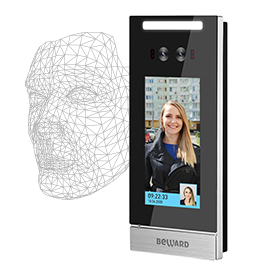 5" дисплей, две 2 Мп камеры КМОП 1/2.8" SONY Starvis, 0.01 лк (день) / 0.001 лк (ночь), H.265/Н.264/MJPEG, 1920x1080, до 25 к/с, IP54, 12 В, Beward Bi-Scan, распознавание лиц (до 24 000 пользователей), подключение считывателя по wiegand, двухфакторная идентификация, светодиодная подсветка, детекция маски, SIP