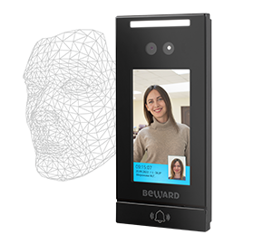 5" дисплей, две 2 Мп камеры КМОП 1/2.8" SONY Starvis, 0.01 лк (день) / 0.001 лк (ночь), H.265/Н.264/MJPEG, 1920x1080, до 25 к/с, IP54, 12 В, Beward Bi-Scan, распознавание лиц (до 24 000 пользователей), встроенные считыватель Mifare и кнопка вызова, двухфакторная идентификация, светодиодная подсветка, детекция маски, SIP